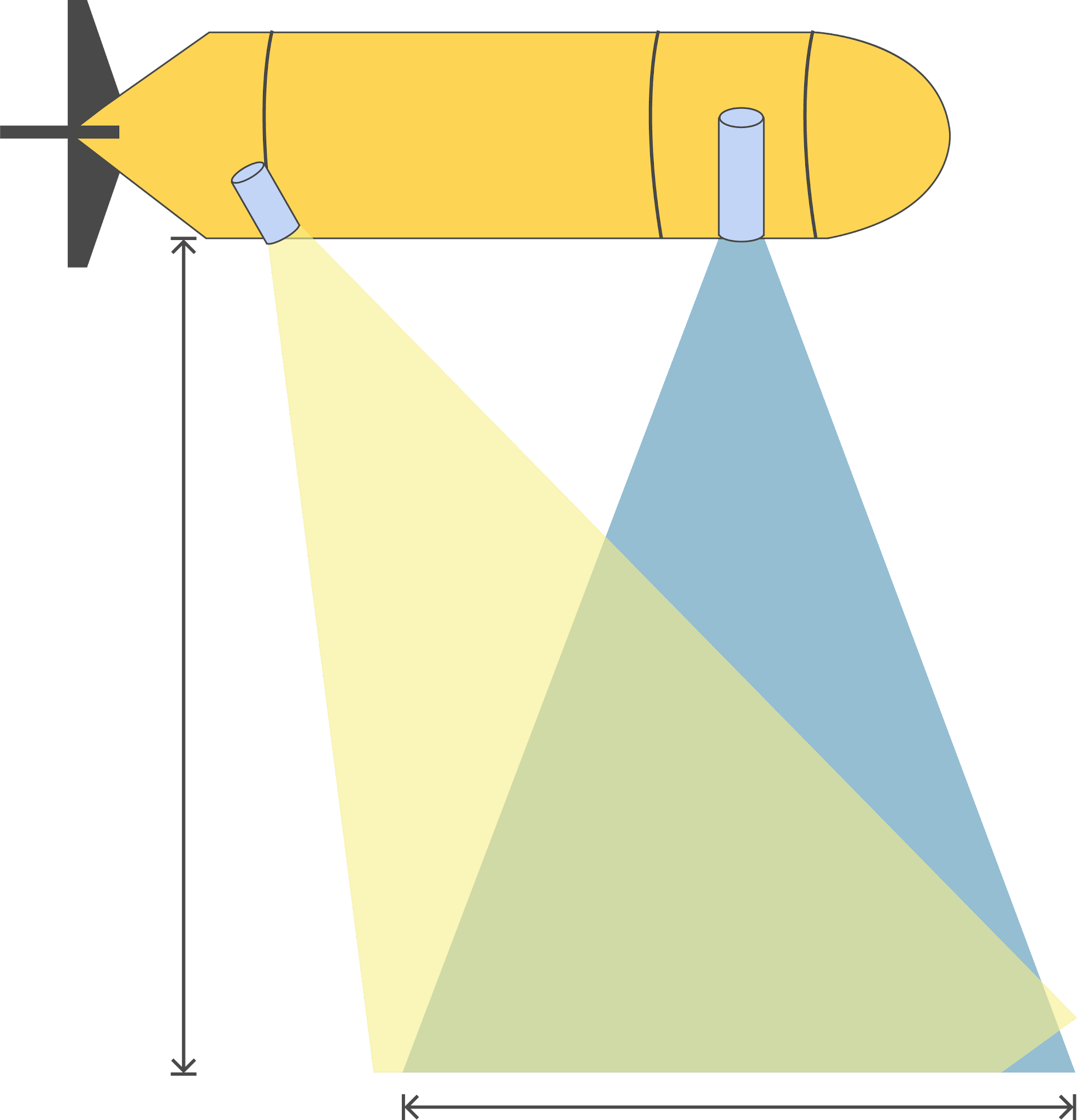 To limit particle backscatter, the LED should be positioned as far away from the camera as possible in the system while also angling the light so that there is sufficient overlap. The Rayfin camera field of view is 80 degrees diagonal and the LEDs beam angle is also matched at 80. So the light should be slightly further from the scene than the camera, which is easily achievable. If it isn’t set up properly, you may end up with dark corners in the images.