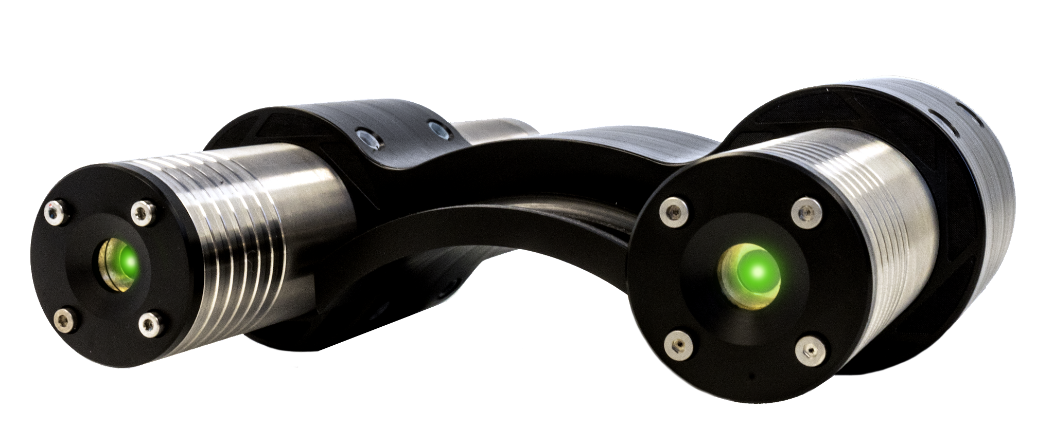 The MantaRay Parallel Lasers is used to identify the distance and scale of underwater objects by projecting two parallel beams that appear as green dots in images.