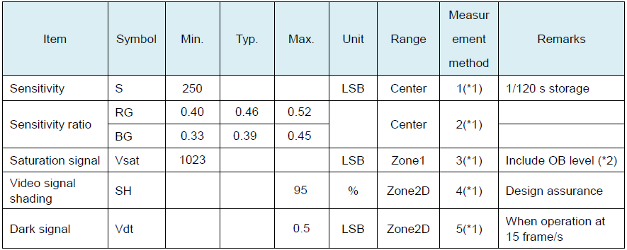 Image Sensor Characteristics (30 frame/s, Tj = 60 ̊C)