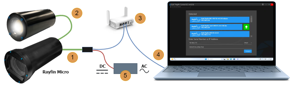 After applying power, the Rayfin should boot up and display in the software in less than 60 seconds. If it doesn’t detect, please refer to this section: Troubleshooting Networking with Rayfin v4