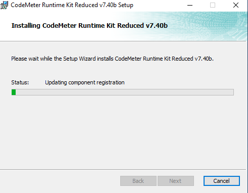 12. Wait as the CodeMeter Runtime Kit installs (it will just take a moment).