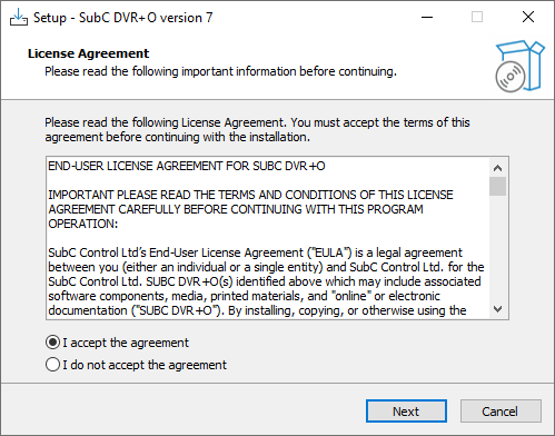 Click “SubCDVR+O v7.x.exe” to run the DVR+O installer and follow the prompts through the installation process.