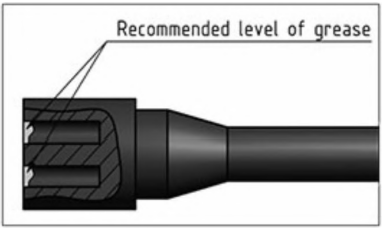 A layer of grease corresponding to a minimum of 1/10th of socket depth should be applied to the female connector