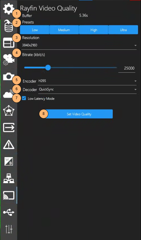 Rayfin Video Quality pertains to the quality of the video streaming from the Rayfin Camera to the DVR+O / SCI Channel.