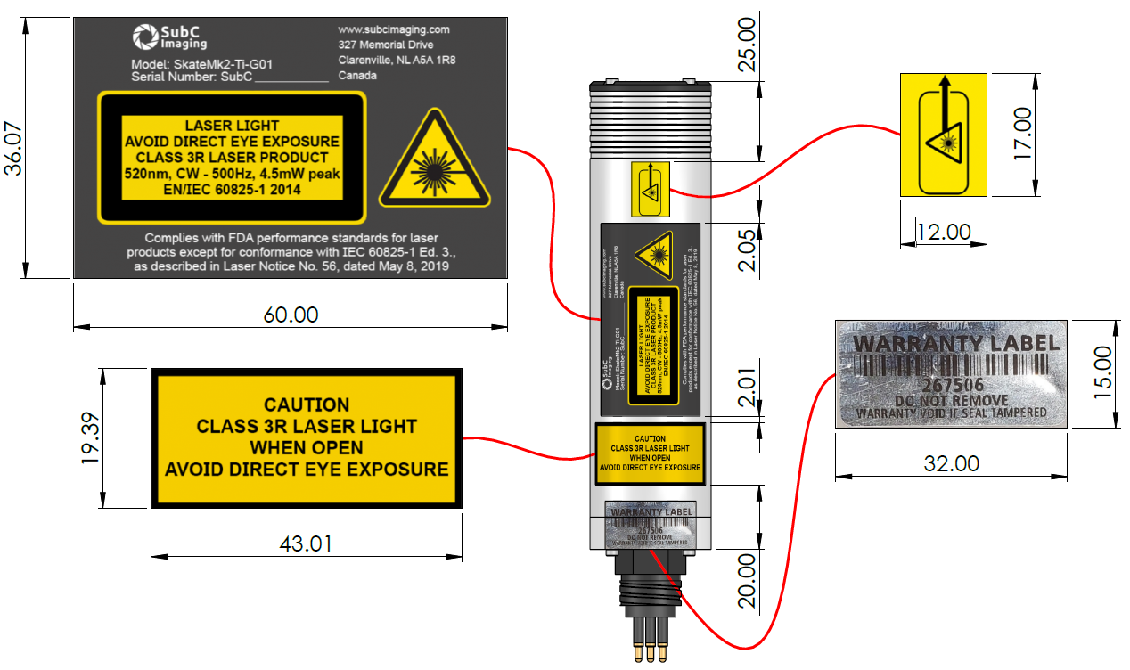 Please refer to the diagram below to locate the laser labels per IEC 60825-1:2014