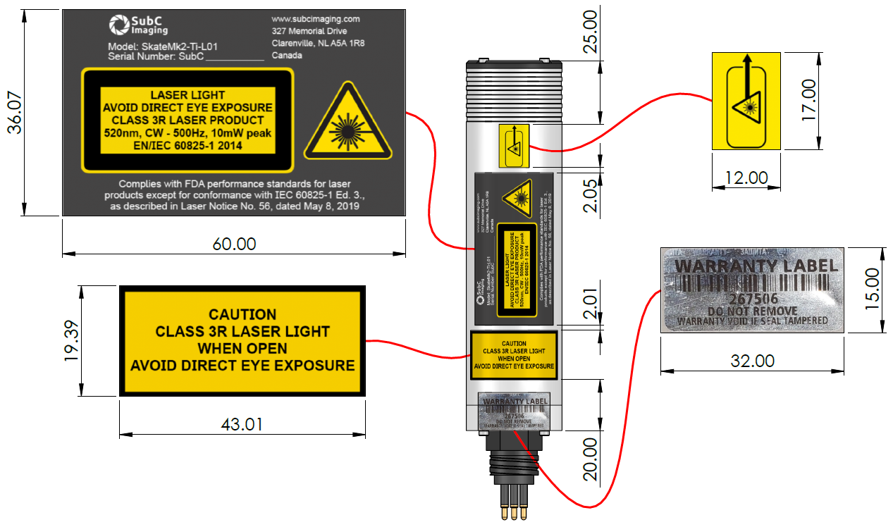 Please refer to the diagram below to locate the laser labels per IEC 60825-1:2014