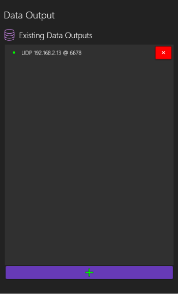 Enter the IP Address of the Data Output target system and the Port number (based on the port numbers open for UDP, TCP or Serial protocol on the target system) or the Serial Address to send data to and click Connect.