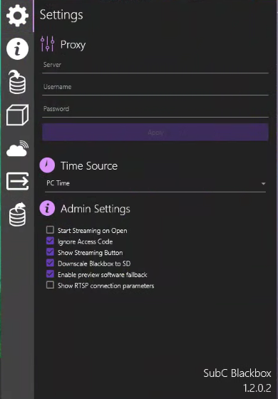 The Stream toggle button will only appear if the SubC Streaming Service is activated for the PC hosting the Blackbox application. See How do I activate a new PC in Streaming service.