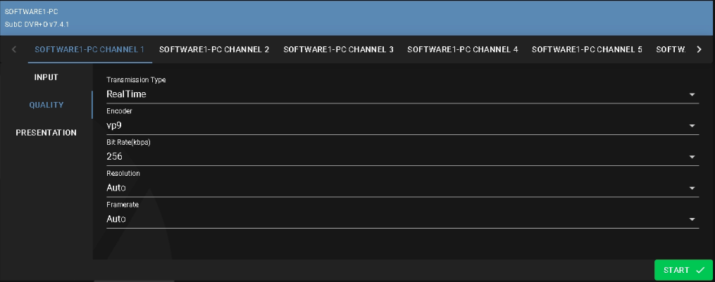 See SubC Streaming Service Web User Manual → Operations for details on Configuring Channels Input, Quality and Presentation within the Streaming Service web UI
