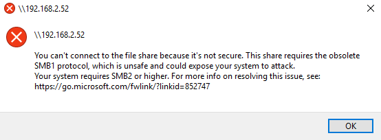 File share not secure - SMB1