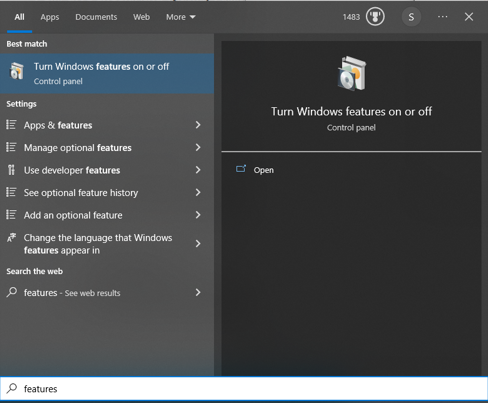 Select Turn Windows features on or off