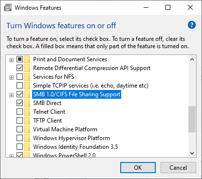 Enable SMB 1.0/CIFS File Sharing Support