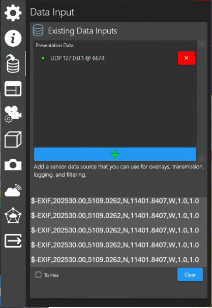 As described in Menu → Data I/O, SubC Software provides the option of getting data from Rayfin Cameras and other applications or devices, such as those reporting environment sensor data: water temperature, depth, etc. and this data can be displayed on the video view as a Data Overlay and/or save to a specified file.