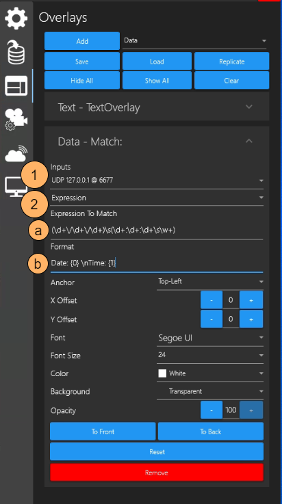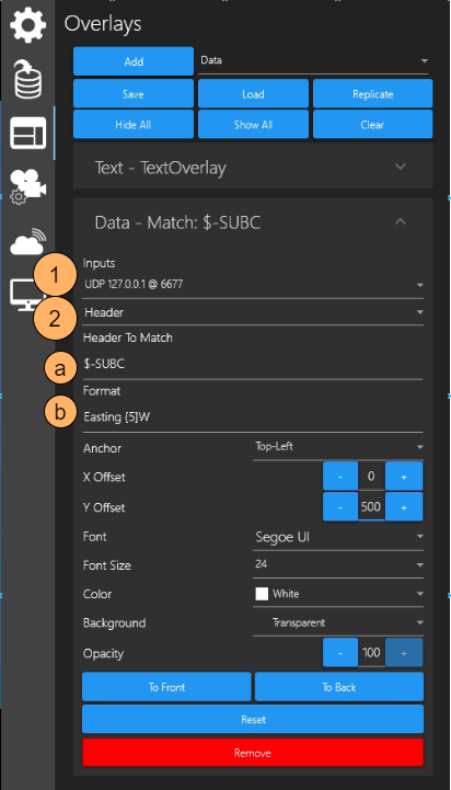 Before you can include Data Inputs in your Overlays, you must first set up Data Inputs. See previous Data Input section for setup details.