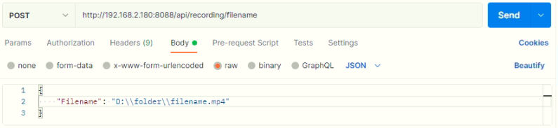 To send a POST command, the steps are the same as from the example shown in {IP}:8088/api/{recording/anomalies}/addsequenceno. But the image below shows a sample request.