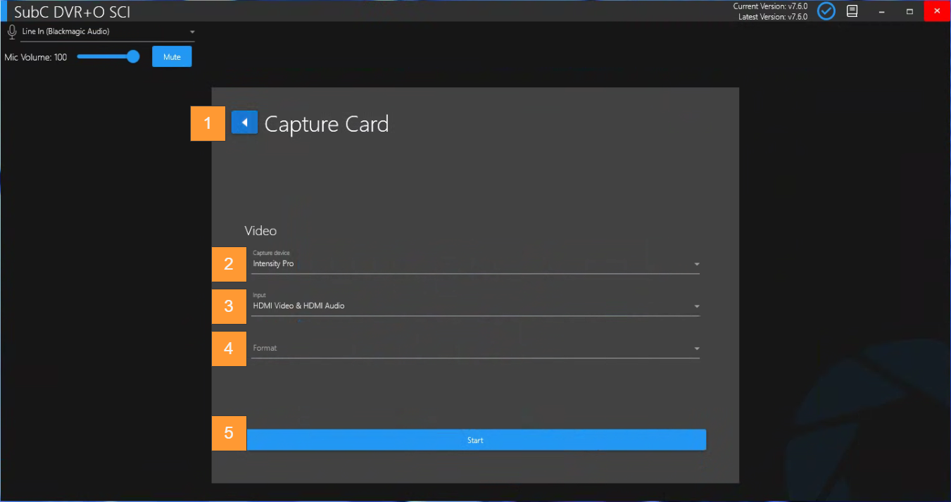 Start – Start the Capture Card input video feed.