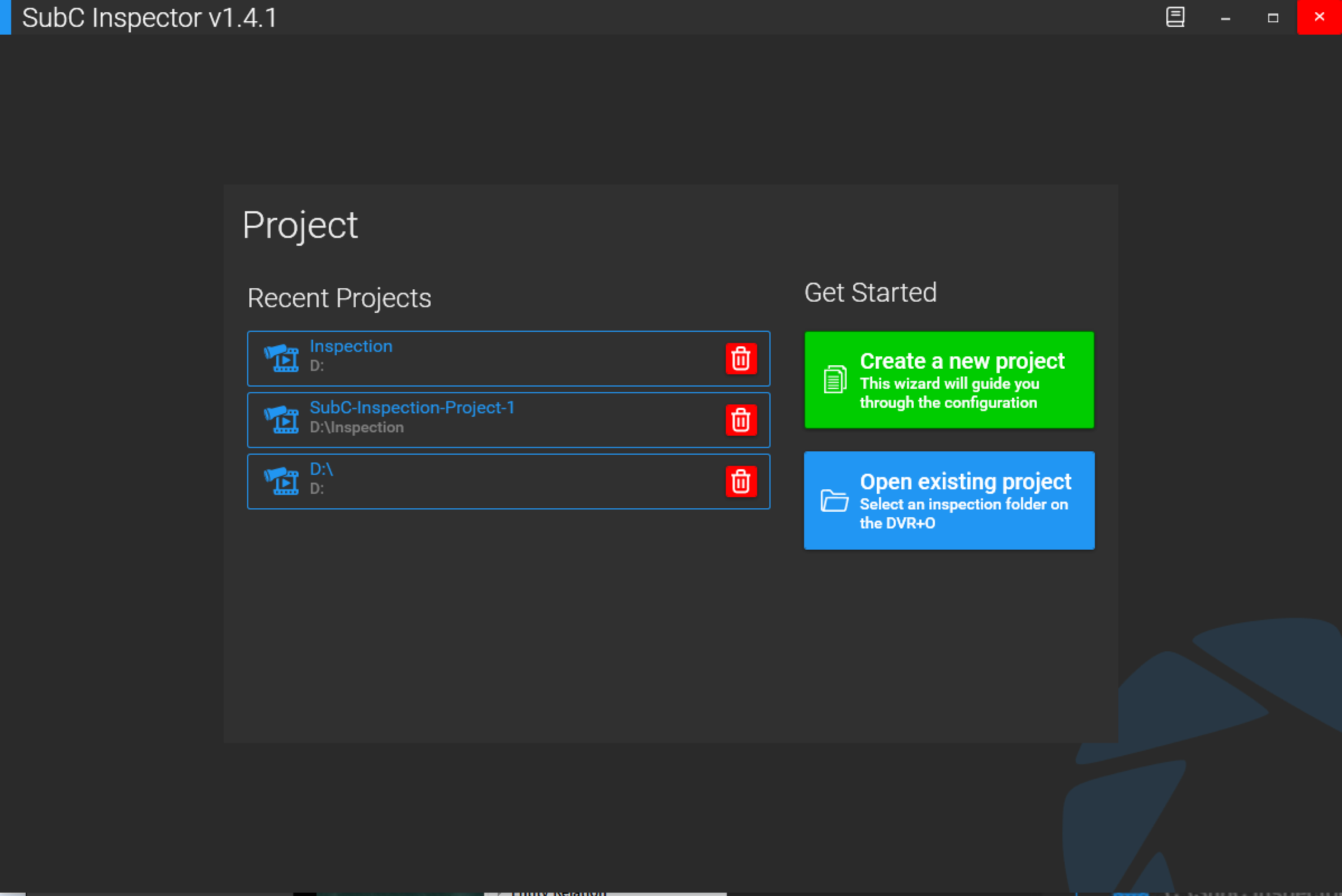 Click a Recent Project to open (Example: “SubC-Inspection-Project-1”)