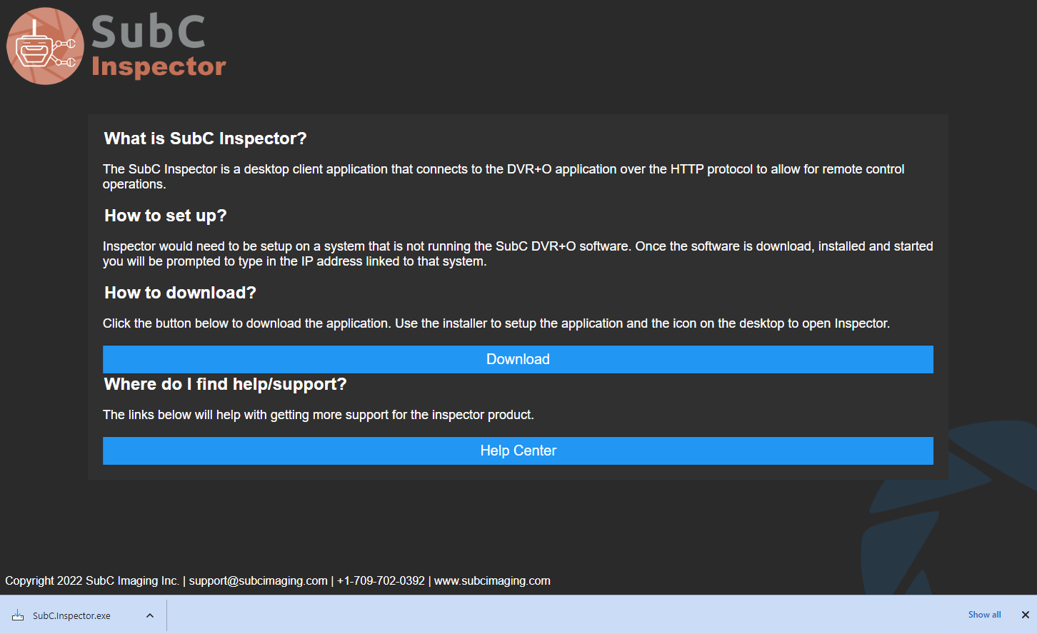Click on the Download button and the SubC.Inspector.exe installation file will be transferred to the Downloads folder on the current system.