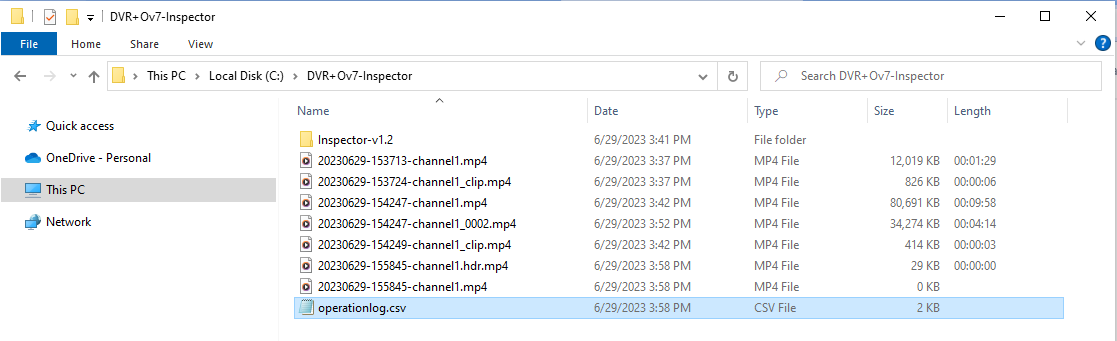 The operationlog.csv log file is located in the same Windows File Explorer folder where you are saving your Inspection files.