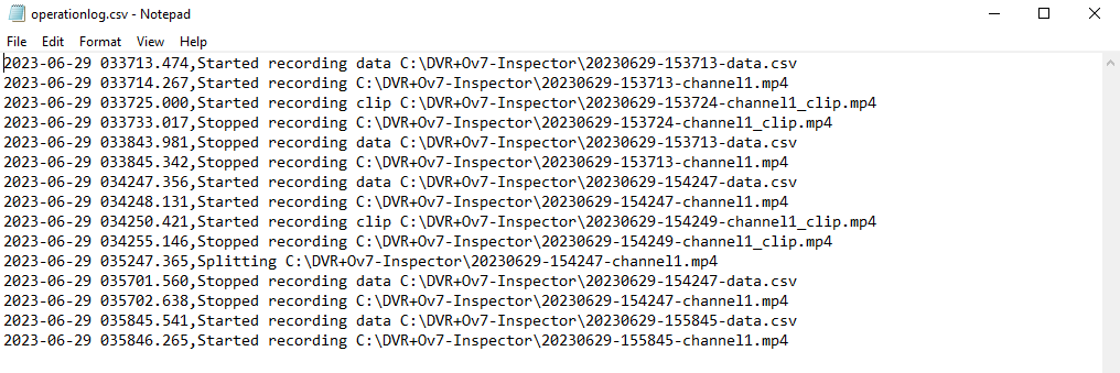 An operation log is now generated in your inspection folder to trace the operation of the DVR+Overlay while conducting an inspection.
