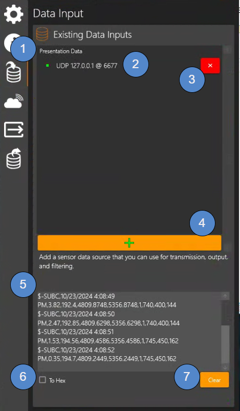 These Data Inputs can then be used for Data Output (transmission), logging, and filtering.