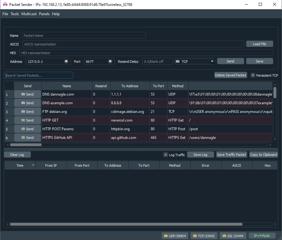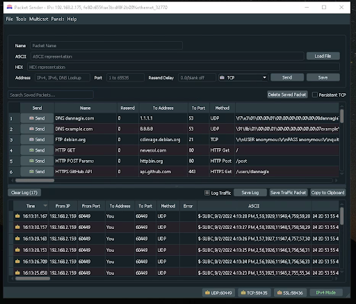 Below is a scenario to help explain the Stream Data I/O features using Packet Sender to confirm the success of the Data Output.