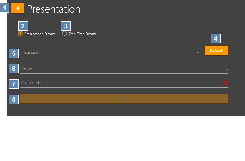 Below is an overview of the Presentations Input in the Stream Desktop UI