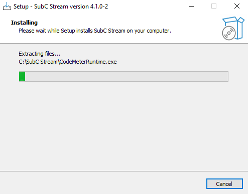 If this is the first time a SubC product is installed on this System, you may additionally see .Net software installing. Simply accept the defaults and allow it to install.