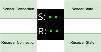 Sender Connection | When the video is received from the sender it will be added to the video element on this page and this dot will turn green. If it turns red it means either the sender video dropped out or there was a problem reestablishing the connection. |