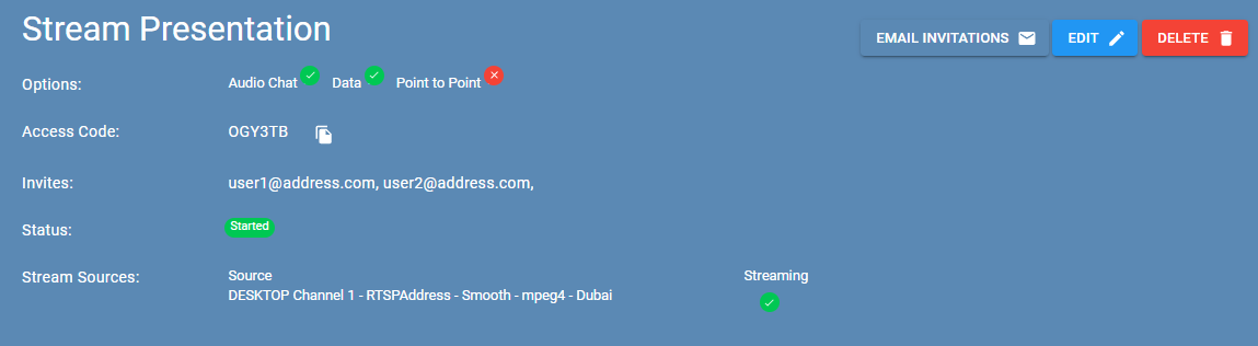 Click the Email Invitations button to send an email that contains the Access Code and a link to the Presentation URL to your invited viewers.