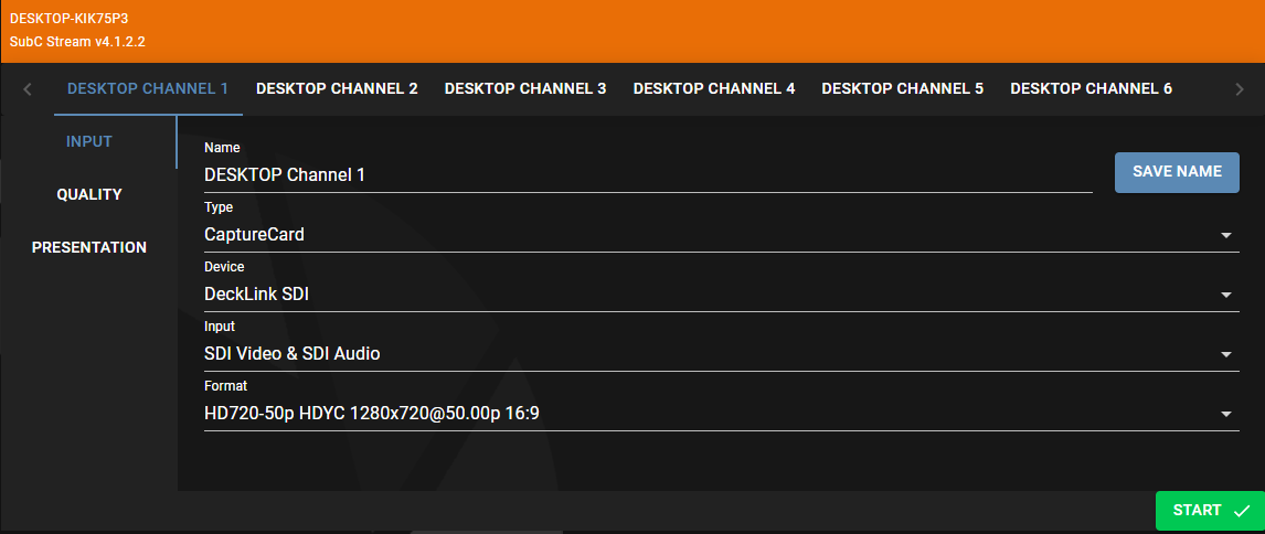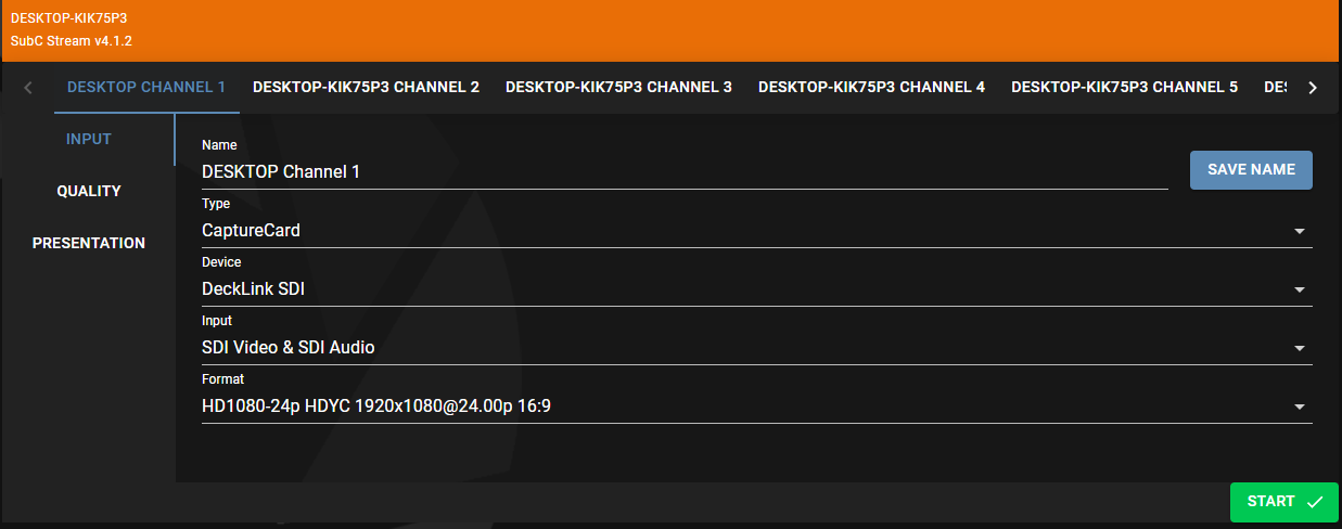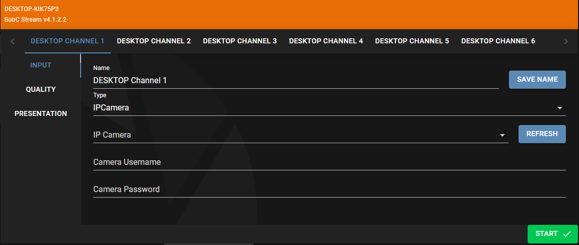 Click the START button to begin Streaming